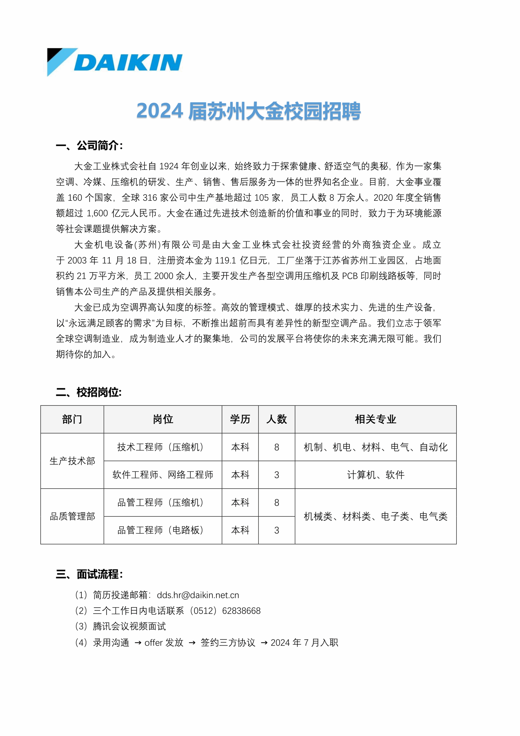 2024届苏州大金校园招聘